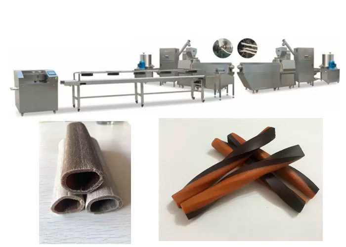 Come si fa lo snack per cani a doppio colore / la macchina per masticare il cibo per animali è fatta di amido come materia prima con una configurazione scientifica ed è stata estrusa da una macchina coestruttrice,può essere fatto in molti tipi di forme come bastone, osso ect.Questo tipo di cibo per cani non solo fornisce proteine grassi nutrizione vitaminica per i cani, ma anche soddisfare l'hobby natura cane.Ha le seguenti caratteristiche: rafforzare i denti, pulire bocca e denti,i prodotti possono avere molte forme, come twist, bi-color, core-filling e così via.