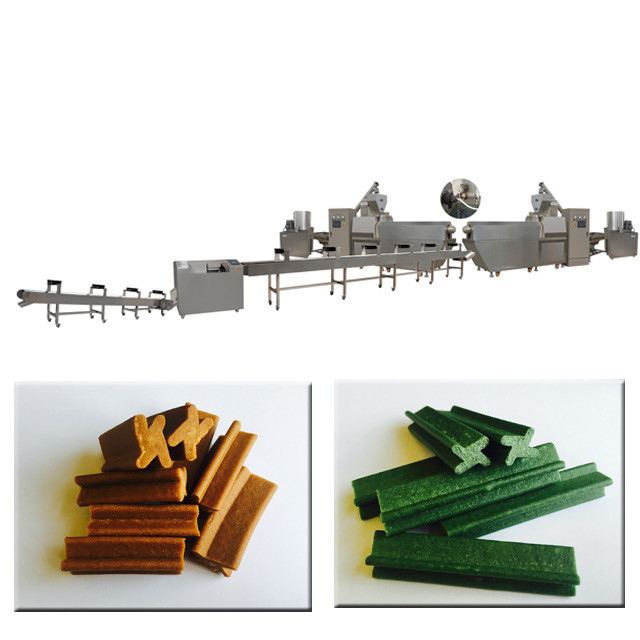 La macchina per alimenti da masticare per cani può produrre alimenti da masticare per cani realizzati con molti tipi di materiali diversi con configurazione scientifica ed estrusione nell'estrusore. Questo tipo di prodotto può essere realizzato in una varietà di forme come bastoncini, ossa, ecc. Questo tipo di alimento non solo fornisce nutrimento ai cani, come proteine, grassi, vitamine, ecc., ma soddisfa anche l'hobby naturale del cane, avvantaggia i suoi denti forti, pulisce bocca e denti e previene le malattie.
